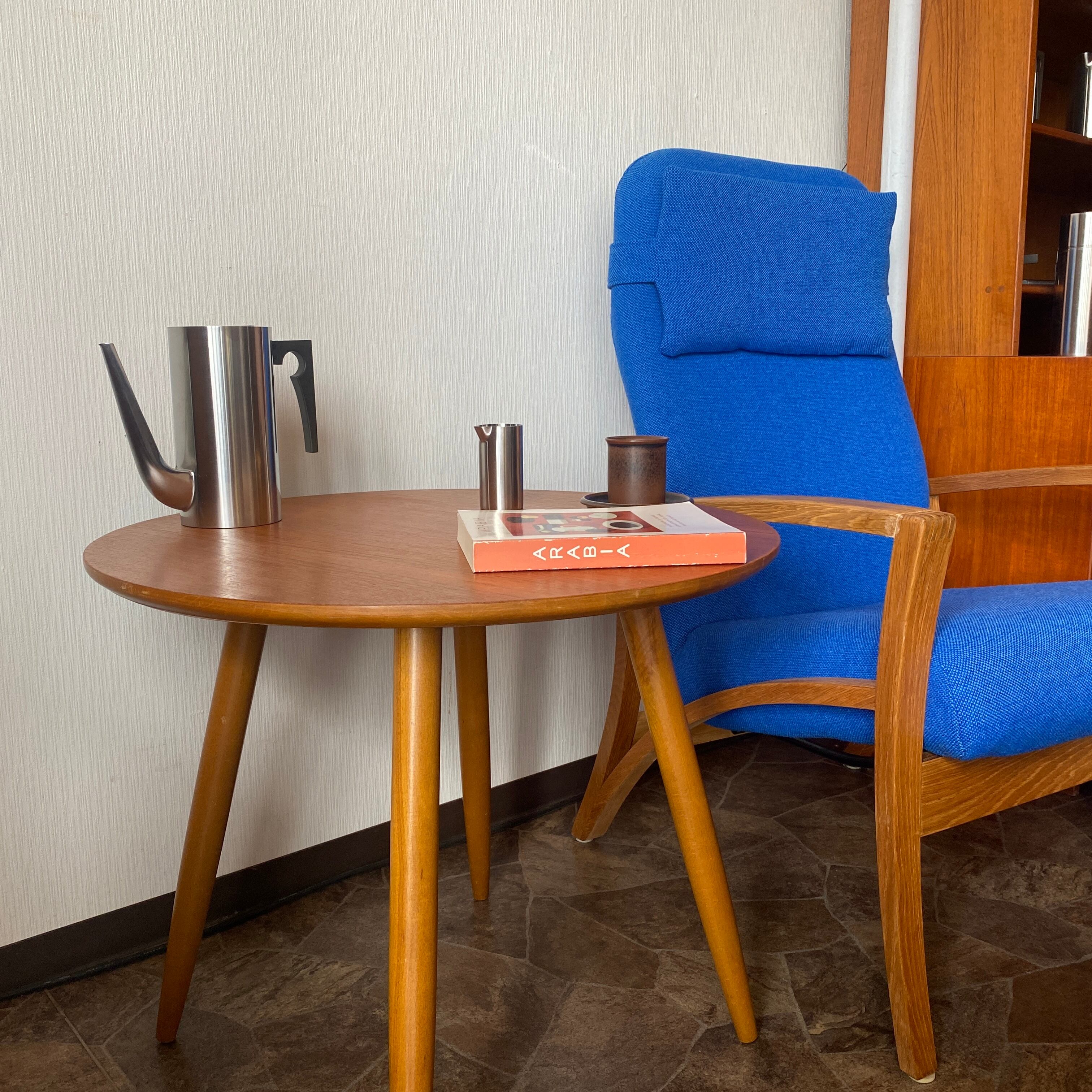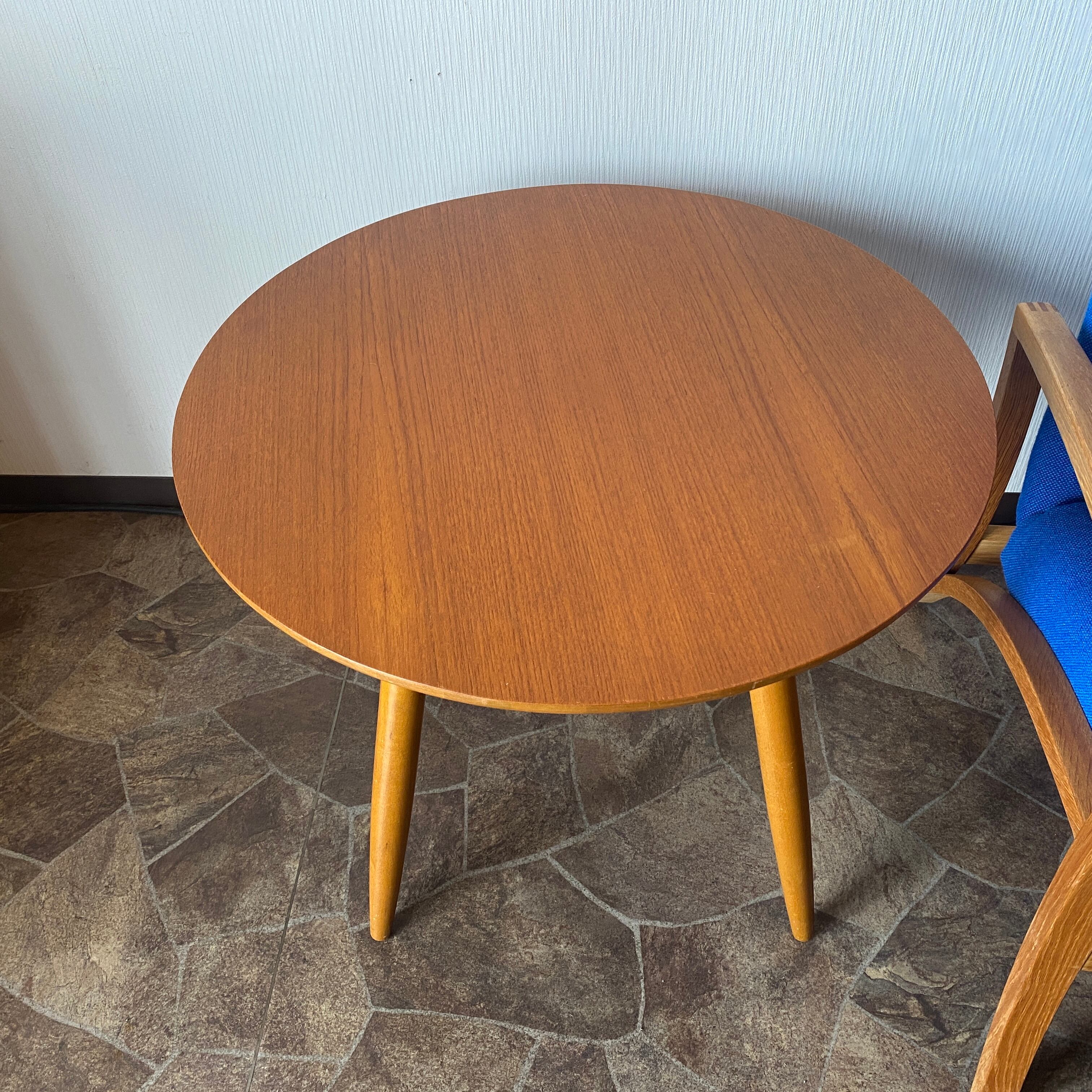 とても人気のある丸型天板のデンマーク製チーク材コーヒーテーブルです。