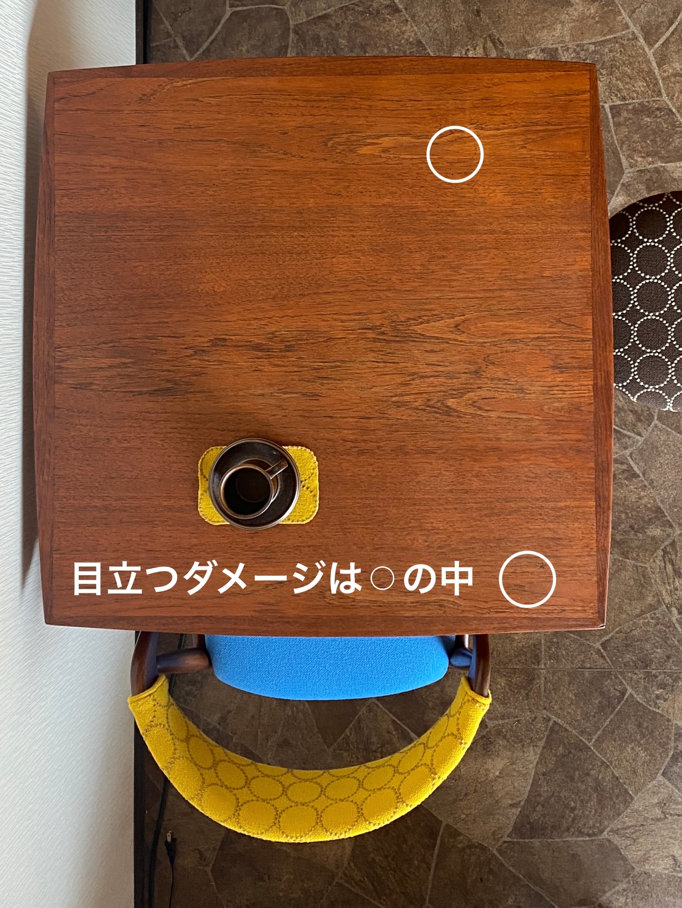 天板は79.5㎝の正方形に近いサイズ、それぞれのセンターが少し膨らんで柔らかなデザインになっています。