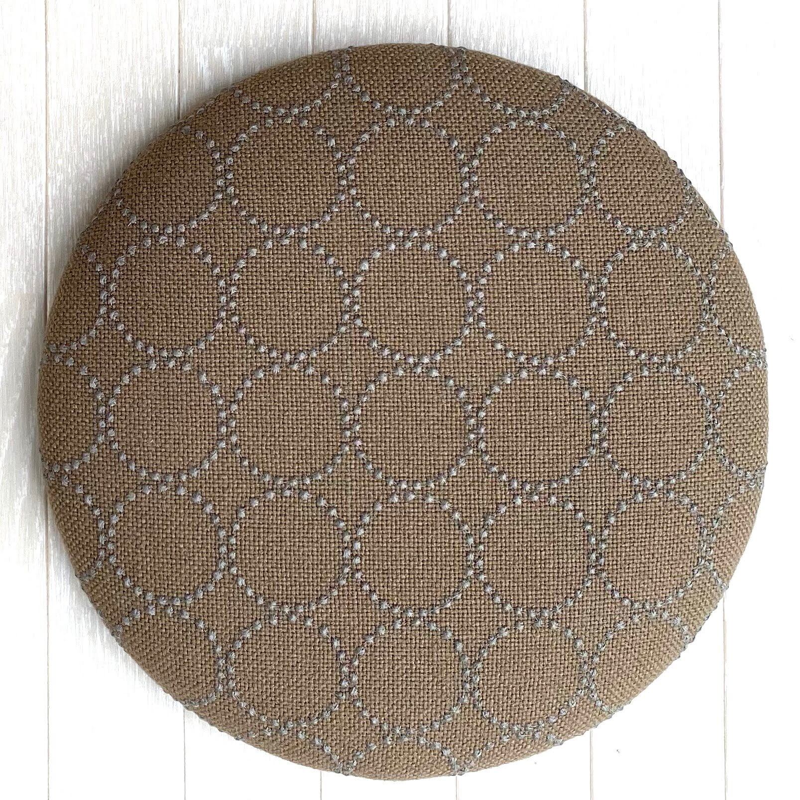 皆川明氏とデンマーク・クヴァドラ社のコラボによる生地、タンバリンハリンダルを使用したスツールです。