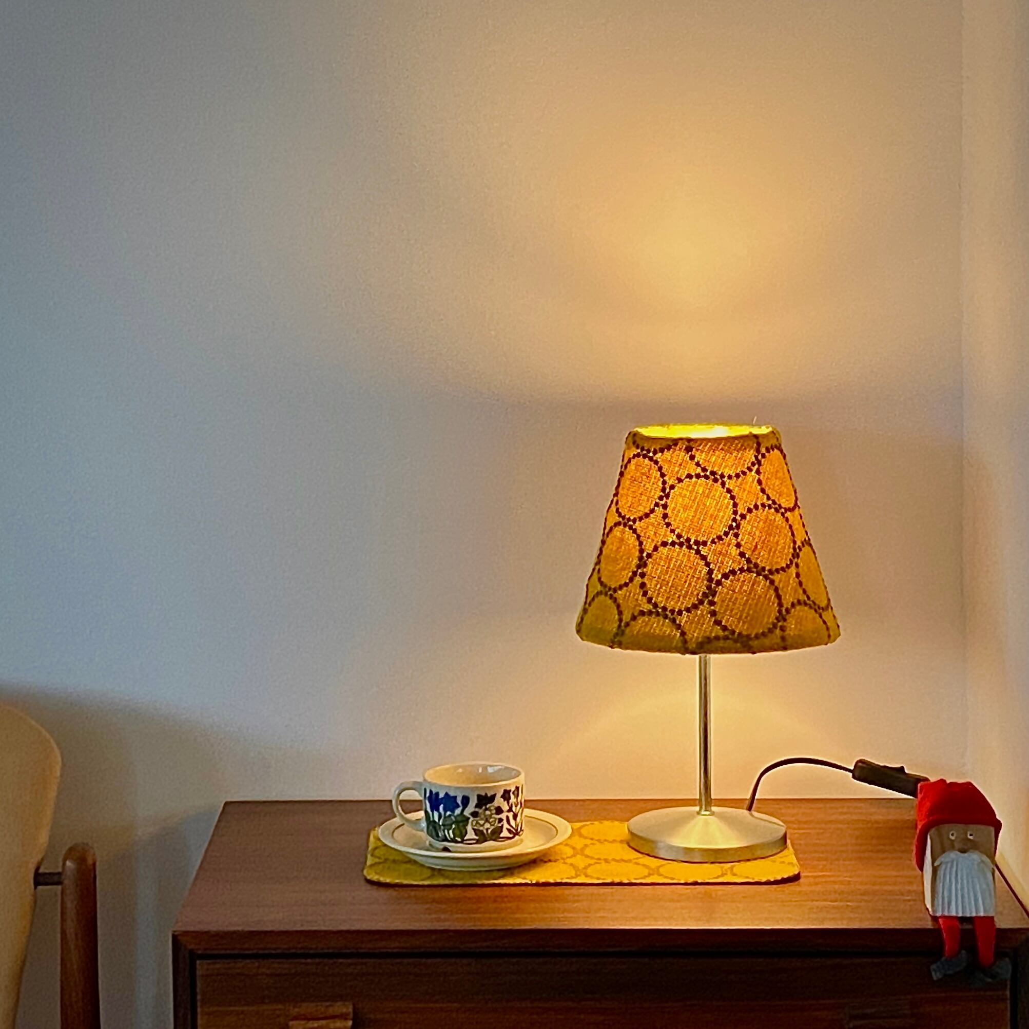 テーブルランプとティーカップを一緒に置けるくらいのサイズです。